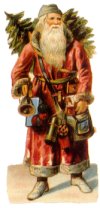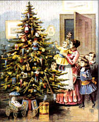 Additional information about Christmas Ornaments..."In the early 1800's, trees were decorated with home-baked cookies, cakes and handmade ornaments such as cotton-batting Santas and silver paper cornucopias. From 1870-1910, the golden era of Victorian Christmas ornaments, the tree glowed with glass figures in scores of shapes, sometimes decorated with crinkled gold or silver, with the glorious hand-blown, heavy glass globes called "kugels"; and with Dresdens, the most exquisite paper ornaments ever created.